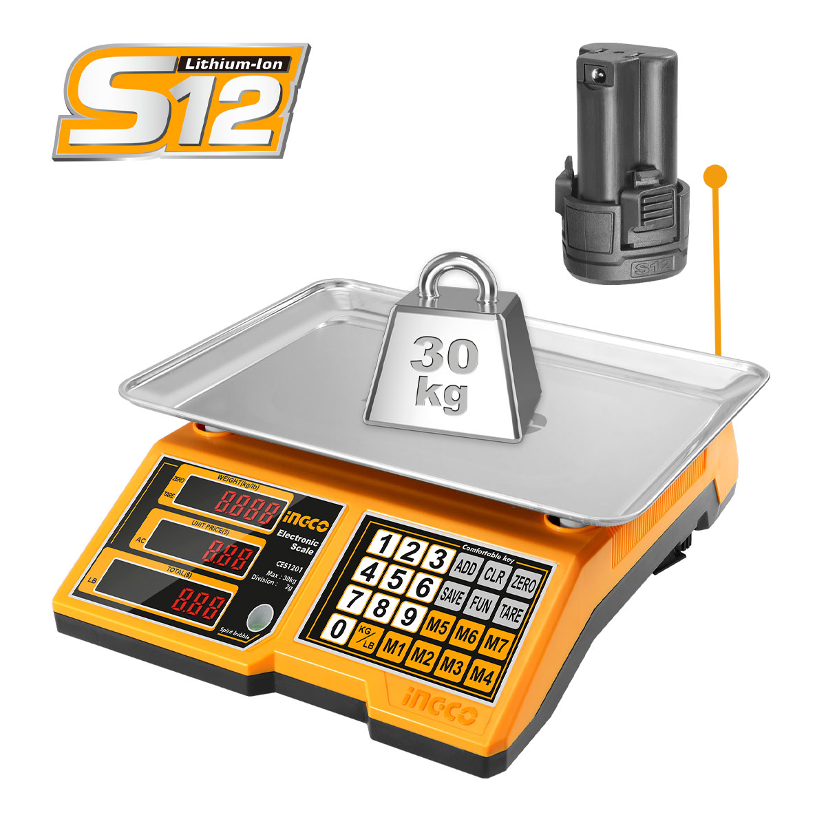 Ψηφιακή Επιτραπέζια Ζυγαριά έως 30kg Μπαταρίας 12V Li-Ion